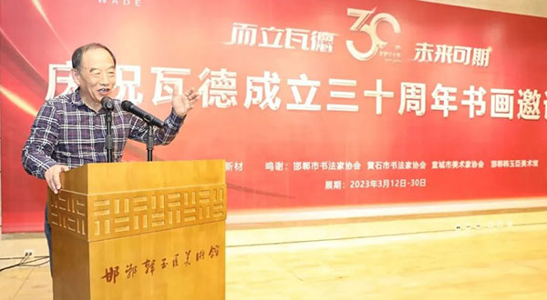 瓦德集團(tuán)董事長(zhǎng)謝富強(qiáng)向與會(huì)的各路藝術(shù)家及賓朋表達(dá)了熱情歡迎。向河北邯鄲、湖北黃石、安徽宣城三地文聯(lián)、書協(xié)、美協(xié)和書畫家們的大力支持表達(dá)了衷心感謝。尤其對(duì)中國(guó)知名書畫家,邯鄲市書協(xié)主席,文化名人,著名企業(yè)家韓玉臣先生對(duì)瓦德集團(tuán)慶典活動(dòng)的鼎力支持表達(dá)了深深的敬意和由衷地感謝。在三千年歷史的趙國(guó)都城邯鄲,能有瓦德集團(tuán)如此注重文化藝術(shù)的實(shí)屬難得,能將深厚的中國(guó)文化的脈絡(luò)注入到自己的企業(yè)產(chǎn)品中非常難得。
